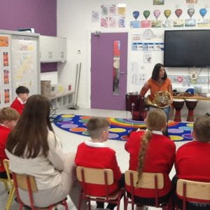 In PE, the children are working on the FIT4CLASS programme-an initiative by Athletics Ireland. It promotes physical activity through non-competitive games, focusing on fundamental skills like balance, coordination, and agility.