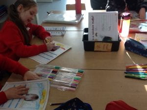 In Art, then children completed personal calendars, gratitude cups and the class worked collaboratively to complete a fabulous piece of Art based on Saint Brigid as well as making crosses.